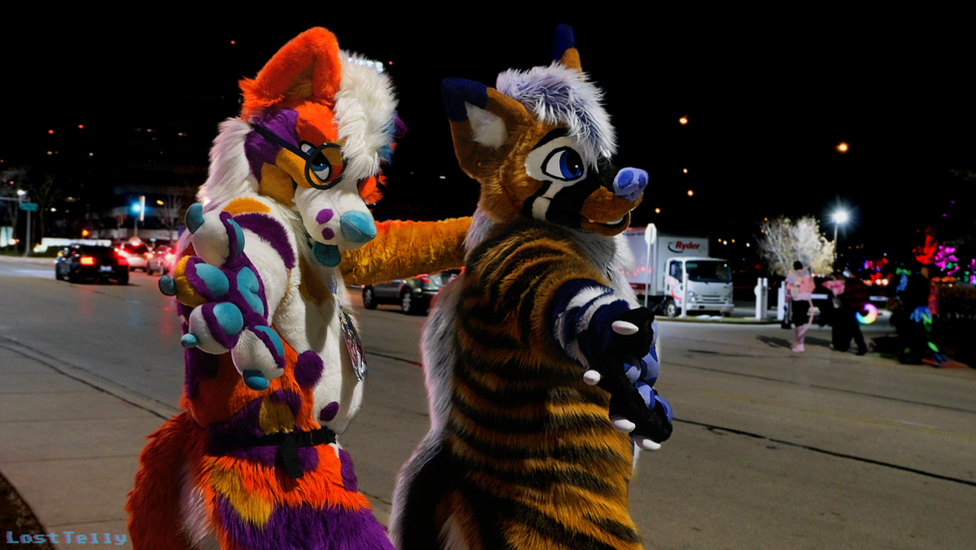 Furries are enthusiasts for animal characters with human characteristics. Many furries will create their own animal persona (fursona) and dress up in costumes as these characters. This is known as fursuiting and the costumes are called fursuits. Many furries fursuit at events such as conventions and meetups.